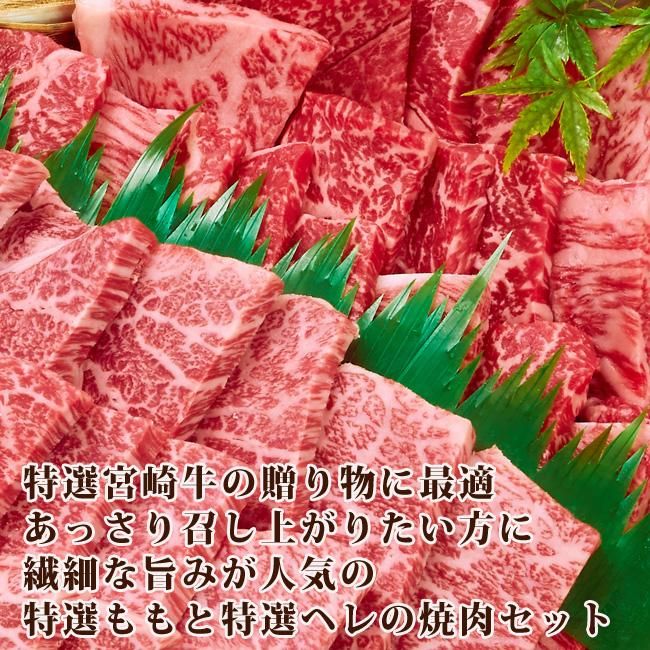 赤身のお肉がお好みの方に喜ばれるギフト。繊細な旨みが人気!宮崎牛の特選ももと、ふんわりしっとり柔らかい食感の特選ヘレセットです。